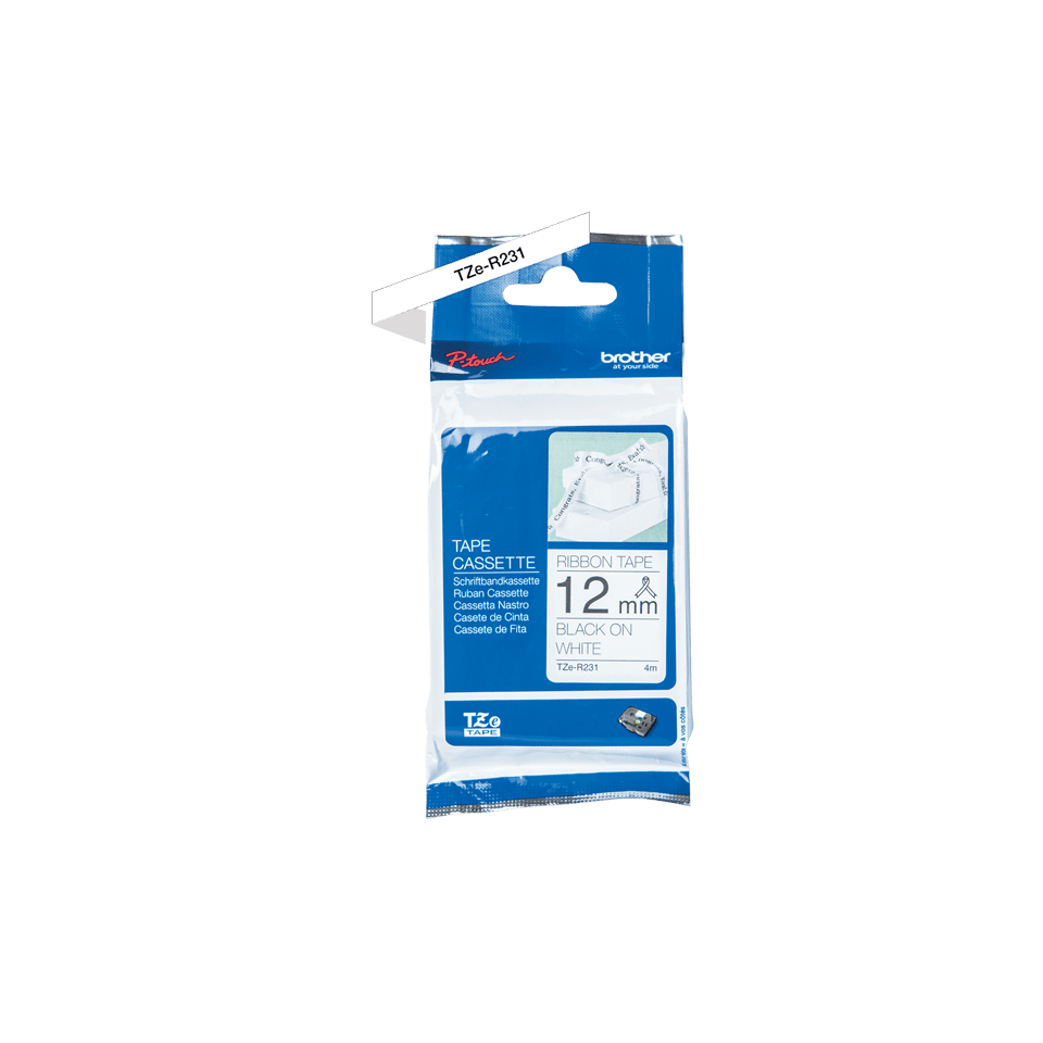 Brother TZe-R231 - Cassette à ruban tissu TZe-R231 Brother originale – Noir sur blanc, 12 mm de large