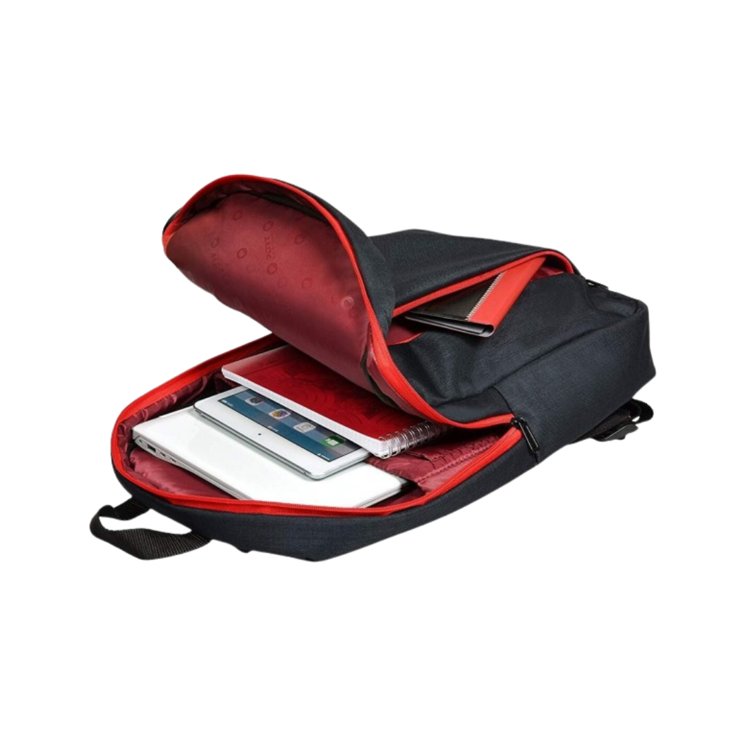 Equipé d'un compartiment matelassé dédié aux ordinateurs portables, ce sac protège efficacement votre équipement contre les chocs et les rayures. Son grand compartiment principal permet le transport en toute sécurité des documents et des effets personnels. Une grande poche avant zippée offre un accès rapide à vos accessoires essentiels tels que votre chargeur, votre smartphone ou vos stylos. D'une capacité de 10 litres, il s'adapte parfaitement aux exigences des journées bien remplies.