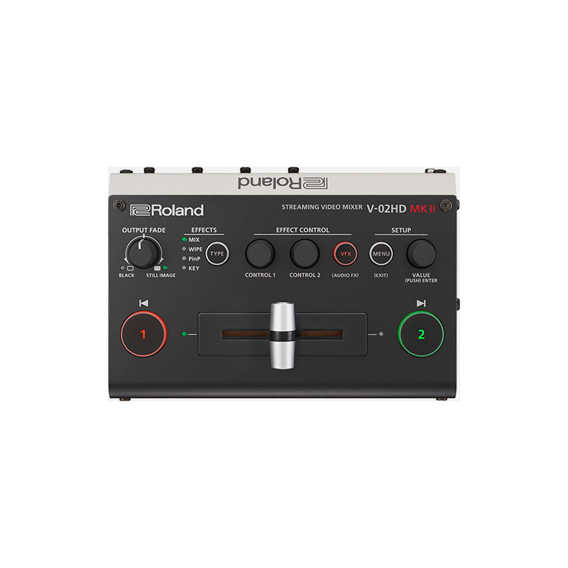 Le V-02HD MKII intègre également une table de mixage numérique 10 canaux proposant la légendaire qualité de son Roland. Vous disposez de deux entrées audio en minijack 3,5 mm, compatibles avec les micros, y compris les micros cravates qui nécessitent une alimentation par le connecteur, ou les sorties stéréo d'un smartphone, d'une table de mixage ou autre appareil. Les flux audio des sources HDMI peuvent également être mixés, ce qui inclut les micros de vos caméras.