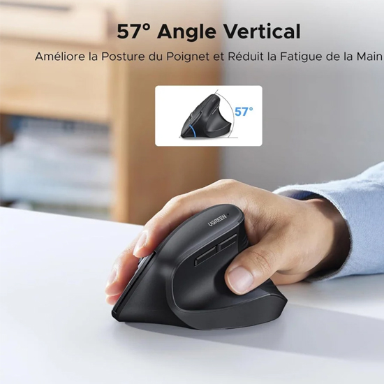 Ugreen 55916 - Souris Sans Fil Verticale M571 Noir 2,4 GHz